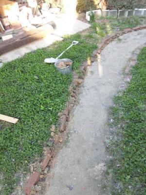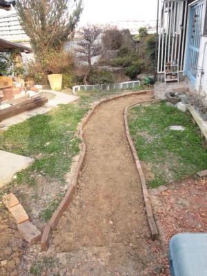 見た目のこともあり、T嬢がレンガの道を作ろう!と発案。