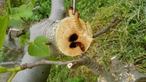殺虫剤を使わないように、テッポウムシのフンを見かけたら枝ごと切って捕獲しています。