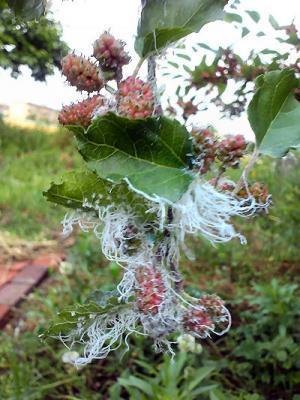 何かしら生き物の仕業だろうと思ったらクワキジラミというクワの重要害虫らしい。